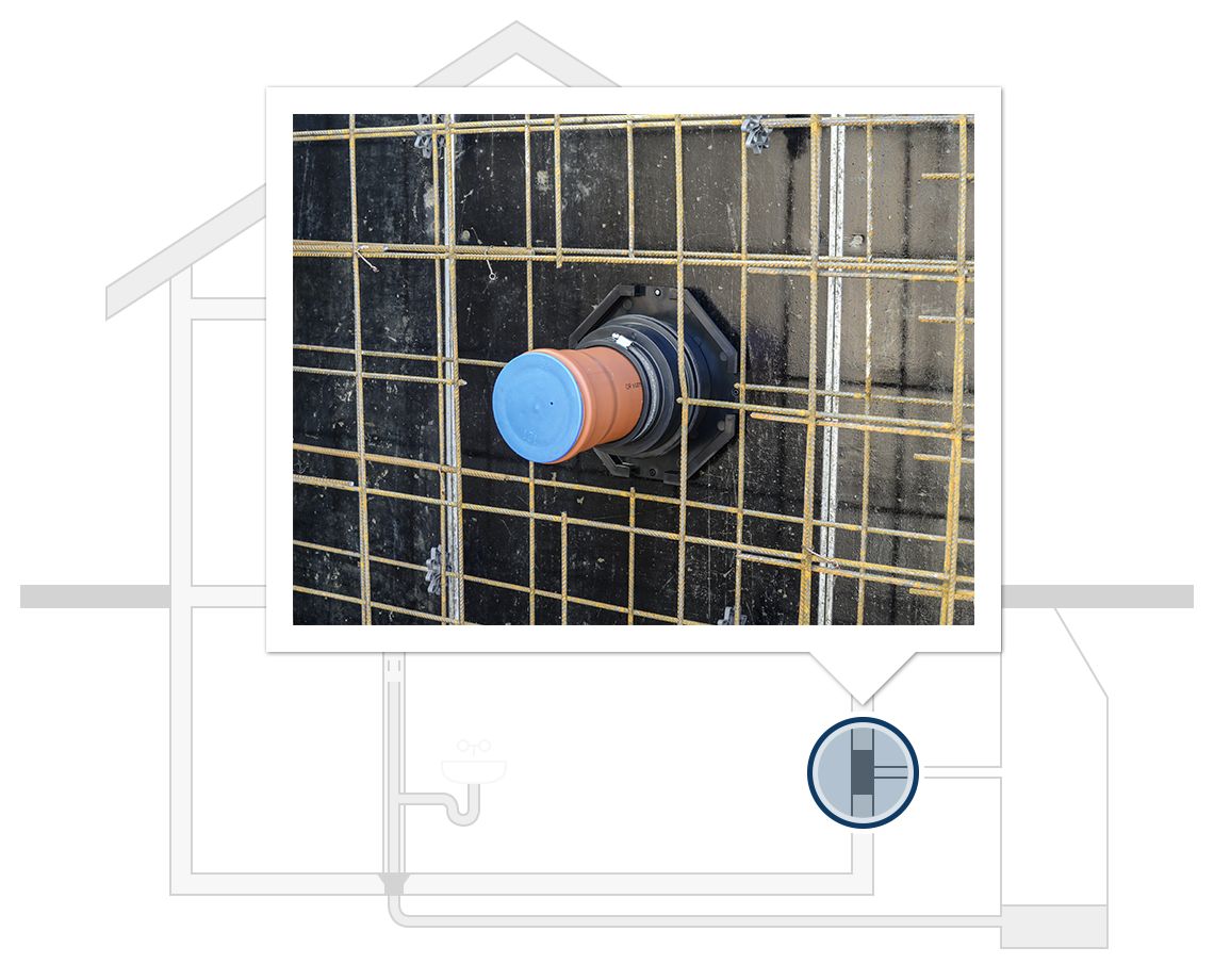 Durchflussoptimierte Wanddurchführung - beugt Ablagerungen und Rückstau im Abwassersystem vor. Ermöglicht durch die besondere Bauweise handelsübliche KG (2000)-Rohre direkt auf der Baustelle in, auf die …